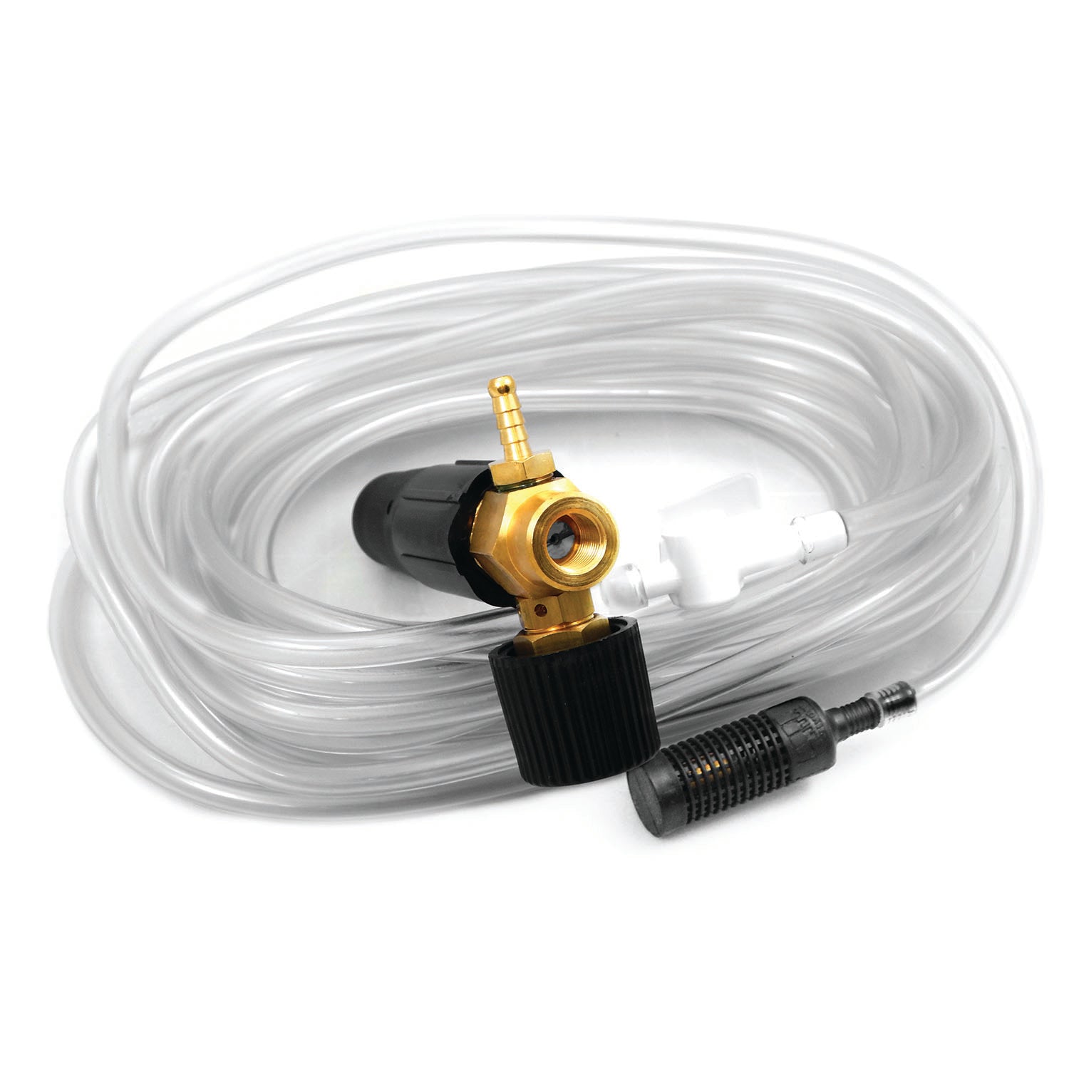 MTM Hydro's Italian Manufactured Foam Jet kit is the standard in the Ag foaming industry and is offered in this specialized extended cleaning Kit. Whether you are foaming down your car on the weekend or you are a professional contract cleaner washing multiple vehicles per day, this tool will save you time and money. Simply attach the foam cannon to your pressure washer wand, install one of the three orifices provided, connect your 33' hose (coming from your chemical tank) and you will have unlimited foam! The Foam Jet Kit was specifically developed with Agriculture in mind as Contract Cleaners will fill a bladder in a back pack or Bucket, cut/insert the draw tube into the pack and they will, then, have the foaming power of MTM Hydro to clean some of the dirtiest places in the U.S!