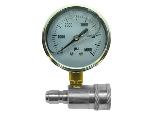 Premium 5,000 PSI Pressure Gauge is now paired with the Stainless top-mount Gauge fitting to effectively measure running pressure and catches spikes that occur when your gun trigger is released or engaged. Use your assembled gauge to measure baseline PSI and compare against baseline at later dates for accuracy.